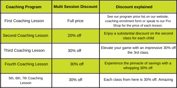 At Shaw Park Tennis Centre, we believe in rewarding dedication and passion for tennis. That’s why we’ve introduced our exclusive Multi Play Coaching Discounts program, designed to empower our coaching students with unprecedented savings as they embark on their tennis journey.